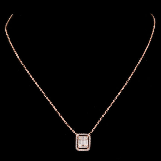 0.64 Carats Baguette & Round Cut Moissanite Halo Necklace