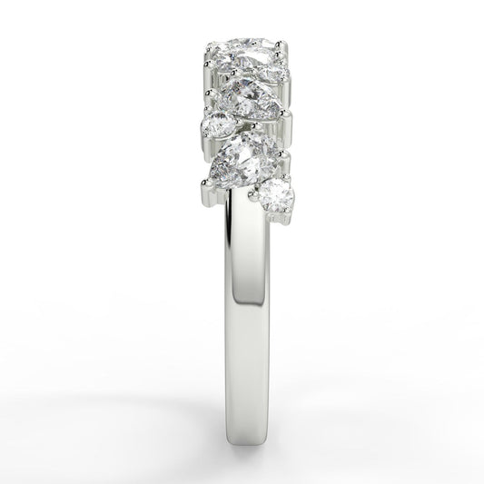 0.66 TCW Round & Pear Moissanite Cluster Style Wedding Band