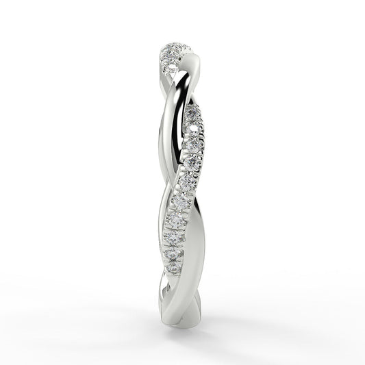 Twisted Pave Wedding Band Featuring 0.05 TCW Round Moissanite