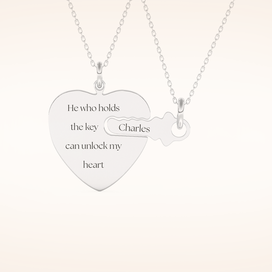Custom Heart and Key Matching Necklace Set – Crafted with Meaning
