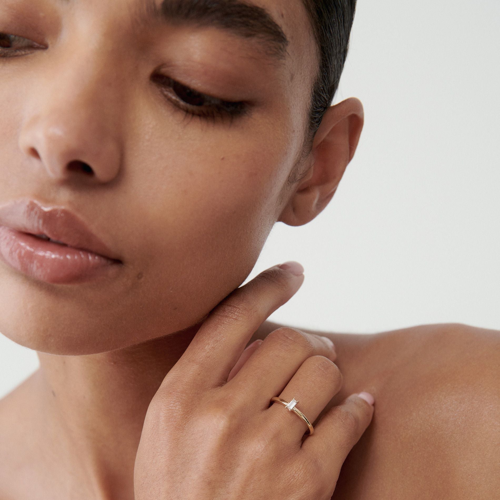 Offset Solitaire Engagement Ring Featuring 0.20 CT Round Moissanite 1
