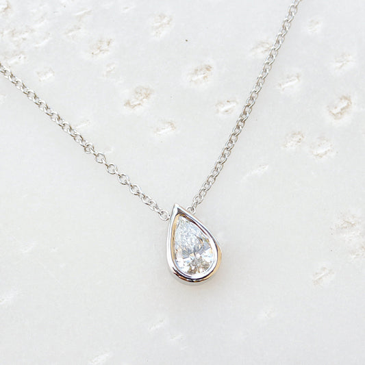 0.30 Carats Pear Shape Moissanite Bezel Setting Necklace