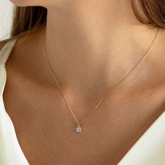 0.18 Carats Baguette & Round Cut Moissanite Square Necklace