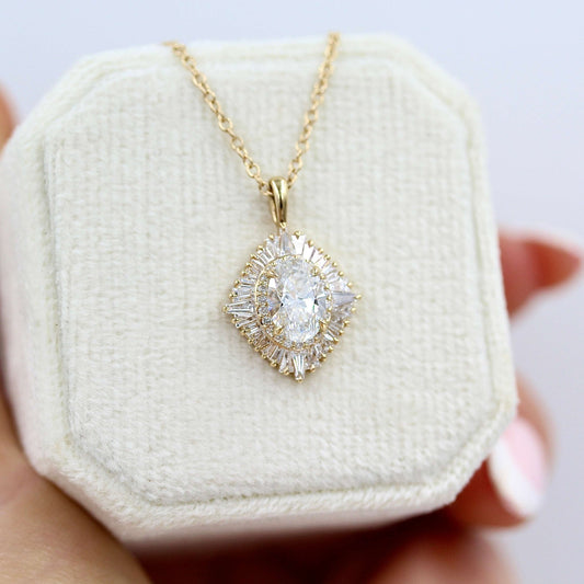 1.25 Carats Oval Cut Moissanite Necklace With Halo