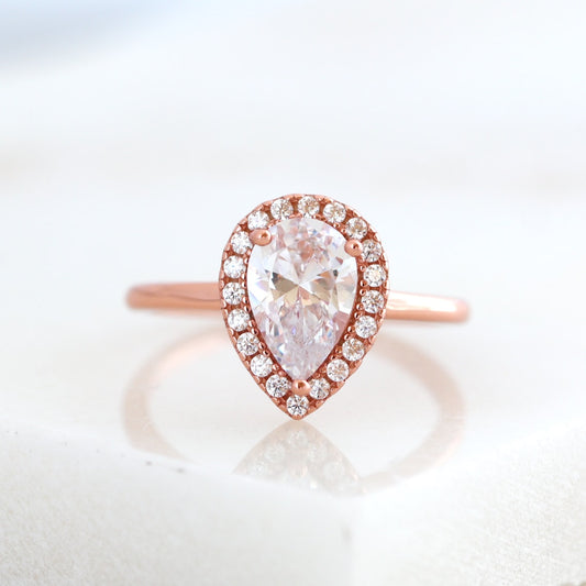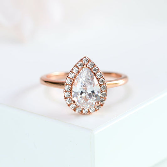Halo Engagement Ring Featuring 1.50 CT Pear Moissanite