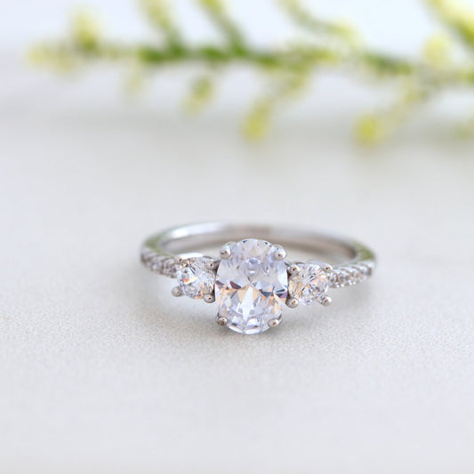 Three Stone Engagement Ring Featuring 1.50 CT Oval Moissanite