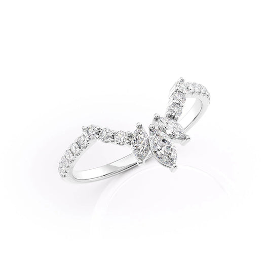 Curved Wedding Band Featuring 0.40 TCW Round & Marquise Moissanite