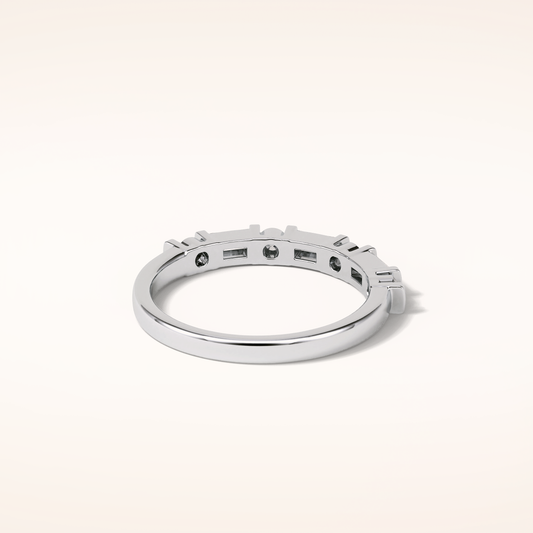 0.42 Baguette & Round Shaped Moissanite Seven Stone Wedding Band