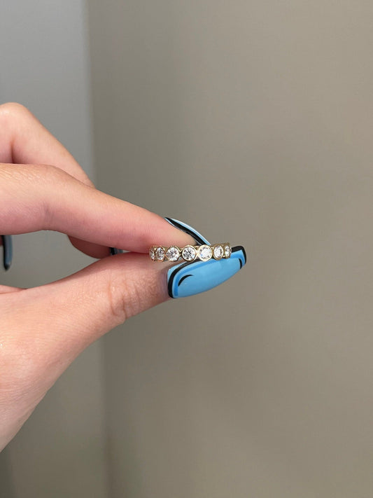 0.90 TCW Round Shaped Moissanite Bezel Half Eternity Wedding Band