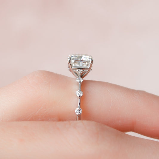 2.0 CT Cushion Dainty Pave Moissanite Engagement Ring