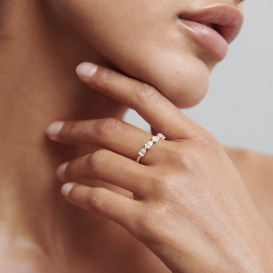 Half Eternity Wedding Band Featuring 1.0 TCW Pear Moissanite