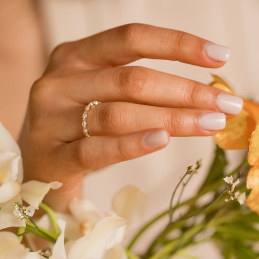 Half Eternity Wedding Band Featuring 0.60 TCW Round & Marquise Moissanite
