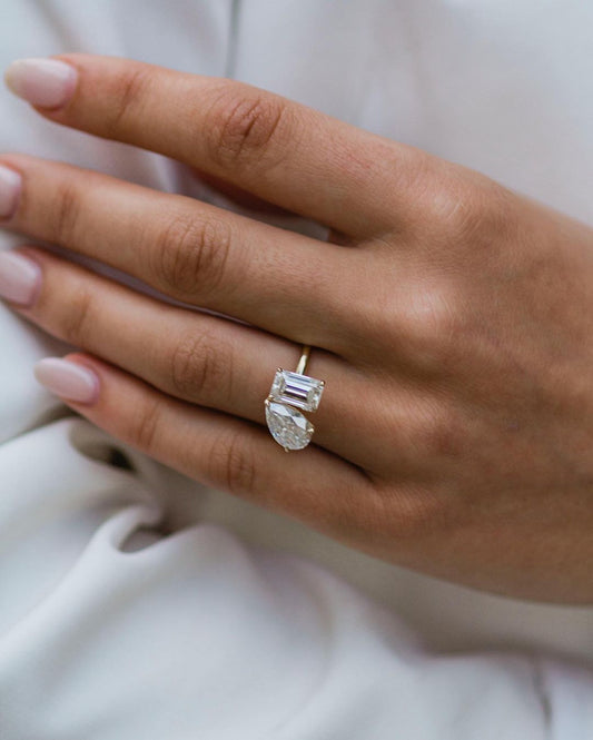 4.25 CT Pear & Emerald Two Stone Moissanite Engagement Ring