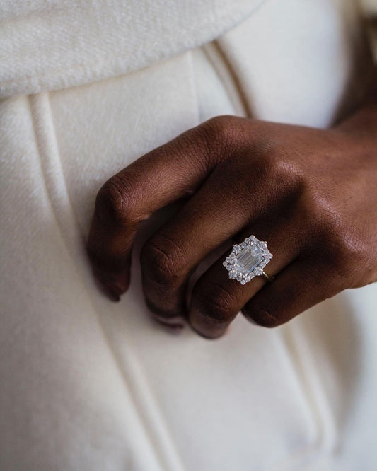 3.35 CT Emerald Cluster Moissanite Engagement Ring