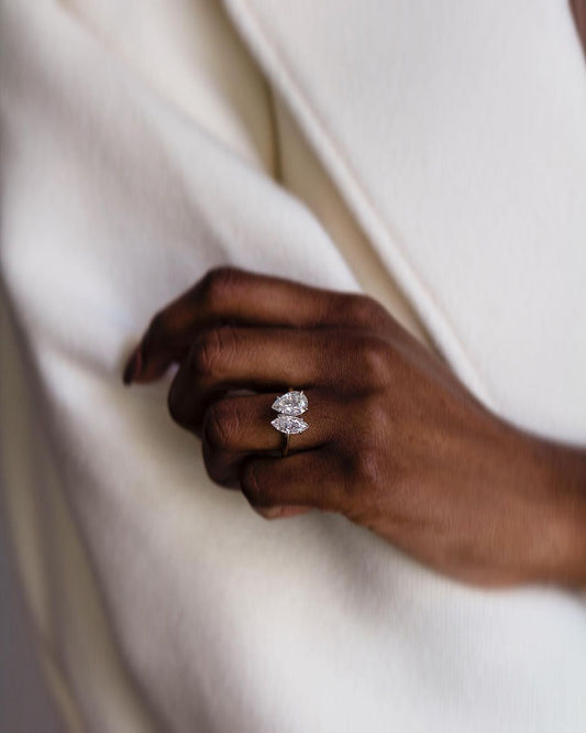 3.45 CT Pear & Marquise Two Stone Moissanite Engagement Ring