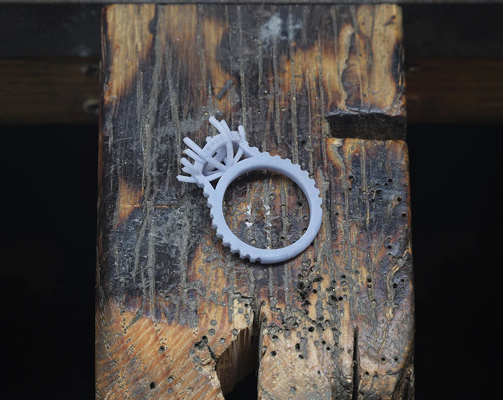 Our workshop creates a 3D model of your design for you to review.  The 3D model is made to scale and is true representation of the metal component of your ring. We can place the central diamond in the model and you try it on and make any slight adjustments prior to production.