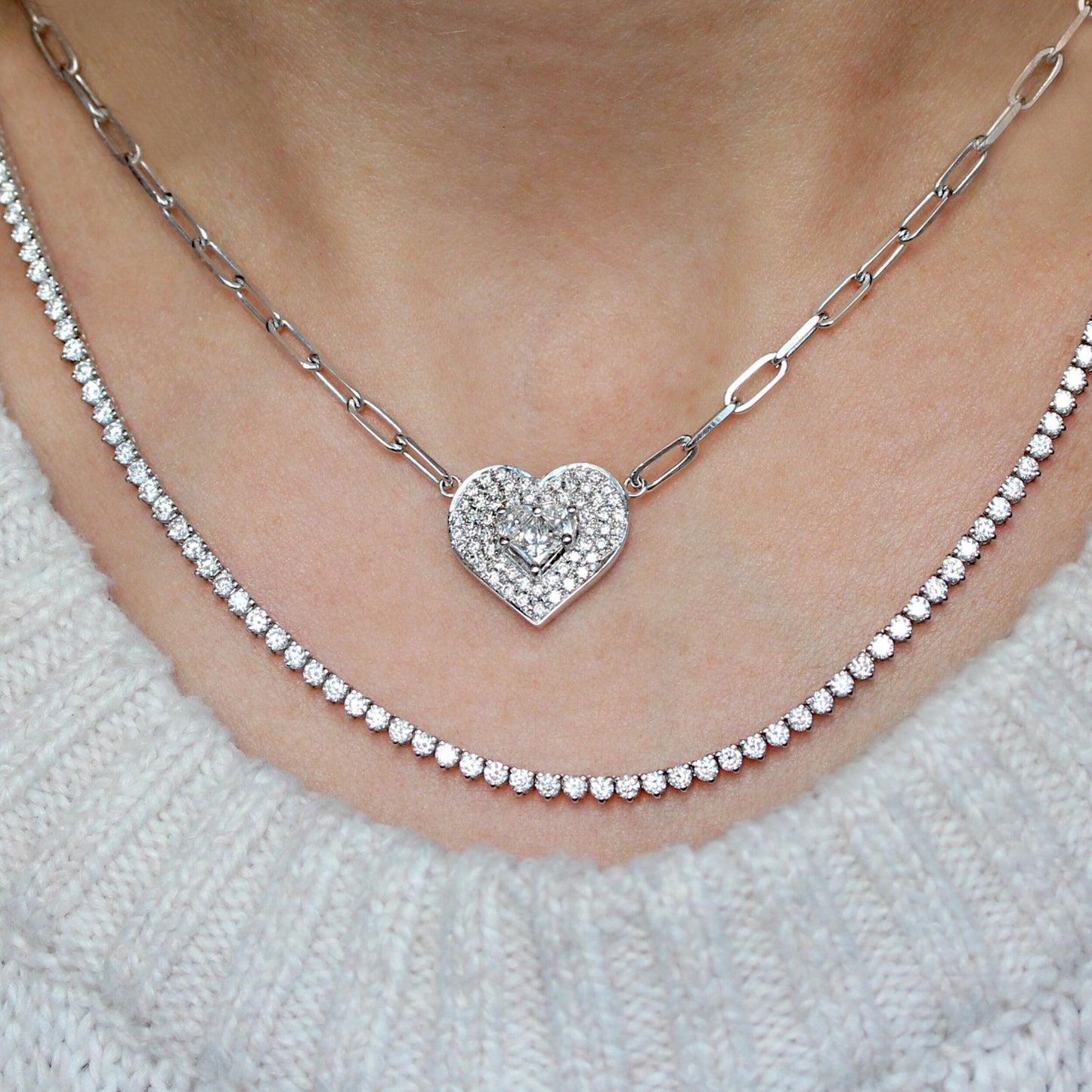 1.0 Carats Pear Cut Moissanite Halo Necklace