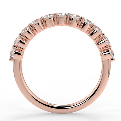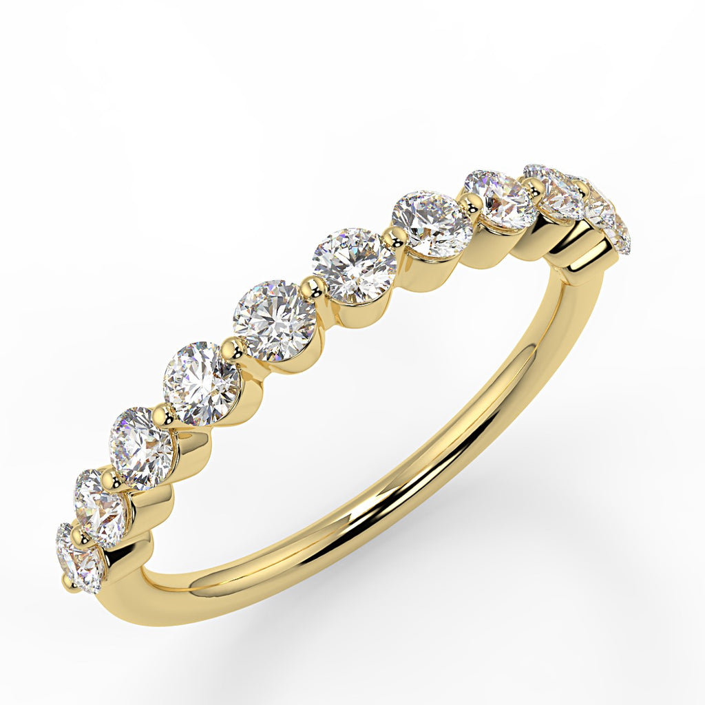 Crafted to perfection, this band combines a modern half eternity design with a classic round cut center stone. The band’s smooth finish and comfortable fit make it ideal for everyday wear. Whether it's an engagement or a special gift, this piece shines with timeless elegance.
