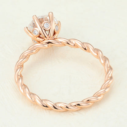 0.88 CT Round Shaped Moissanite Multi Stone Twisted Shank Engagement Ring