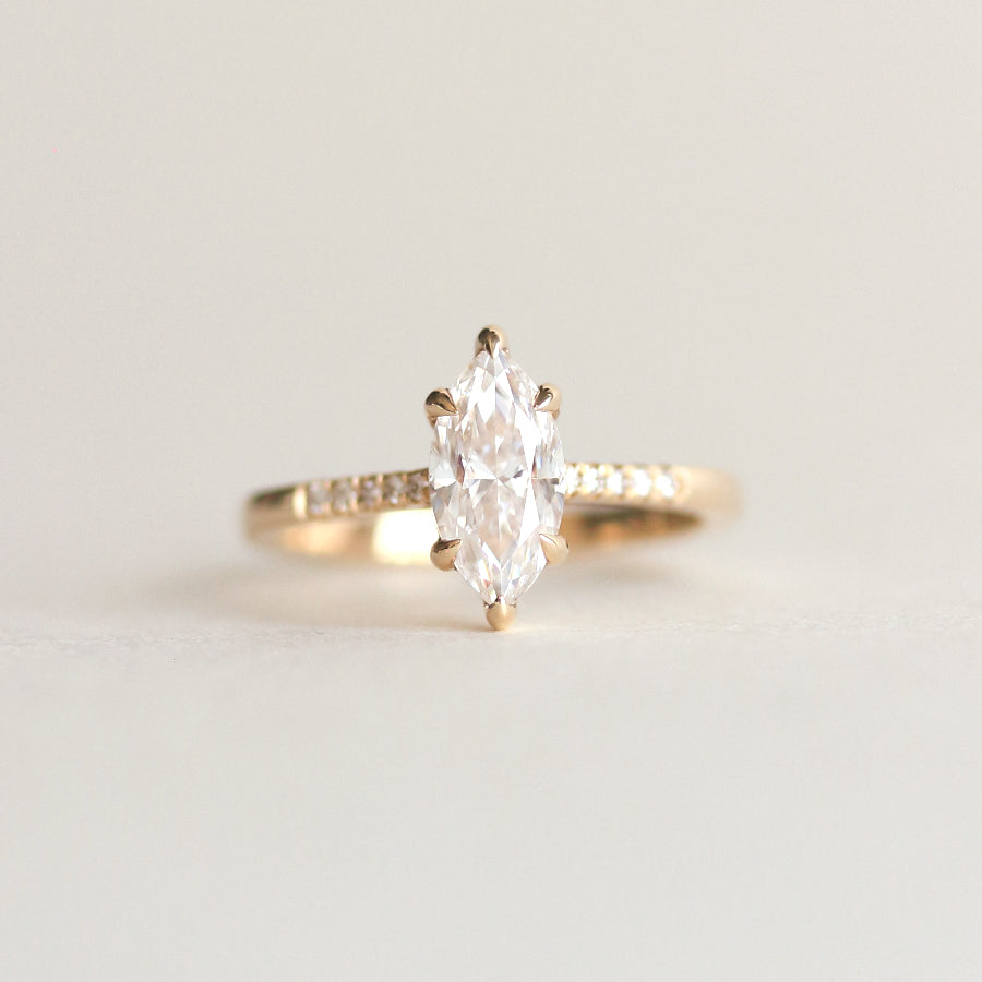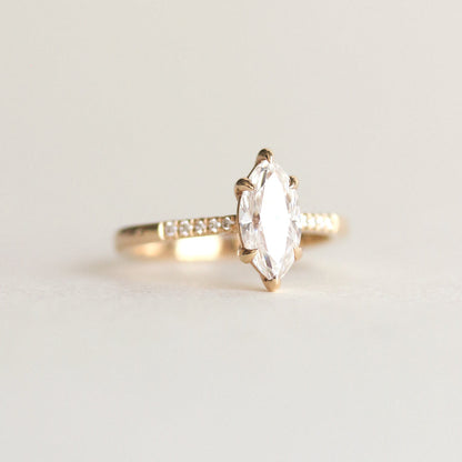 Pave Engagement Ring Featuring 0.90 CT Marquise Moissanite