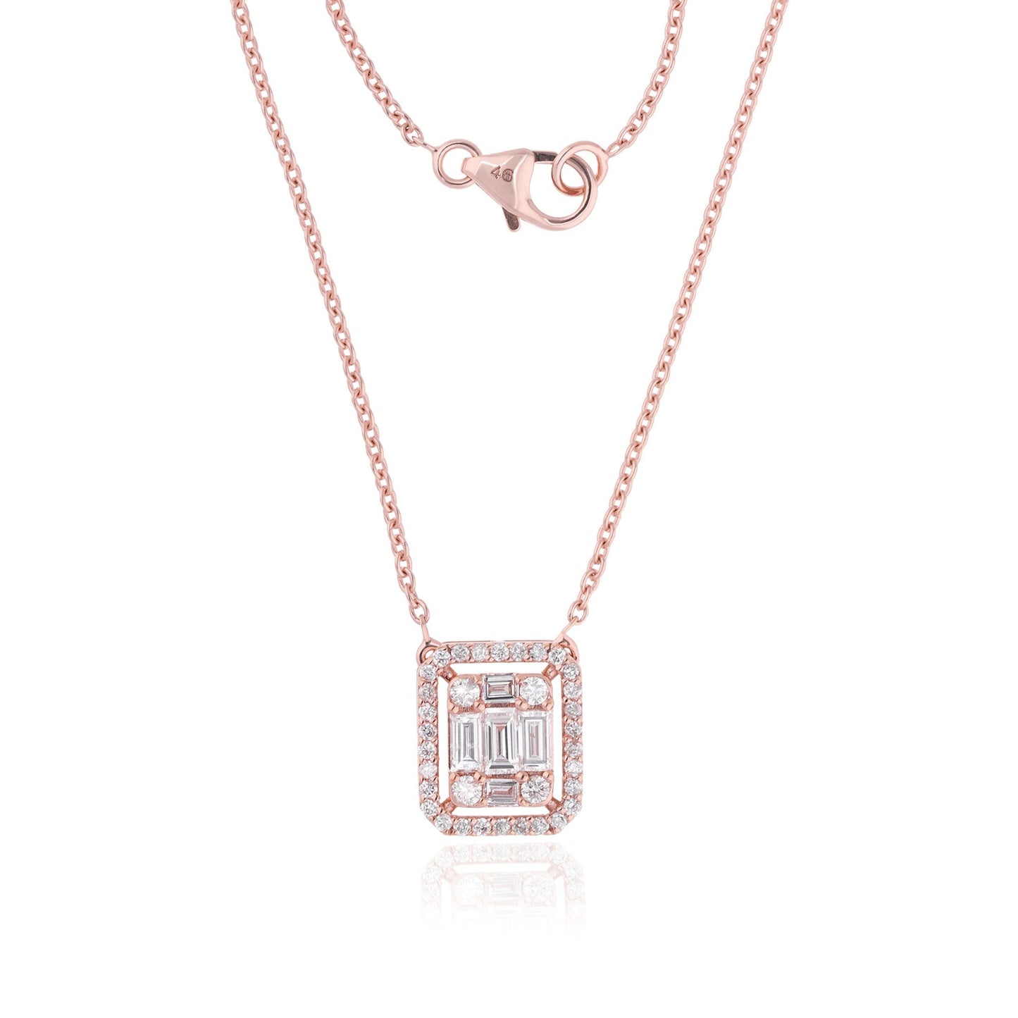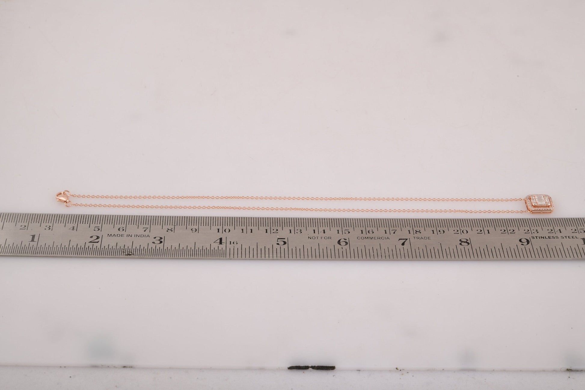 0.64 Carats Baguette & Round Cut Moissanite Halo Necklace
