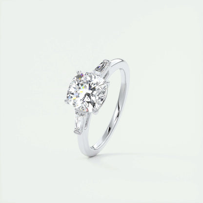 Three Stone Engagement Ring Featuring 2.15 CT Cushion Moissanite