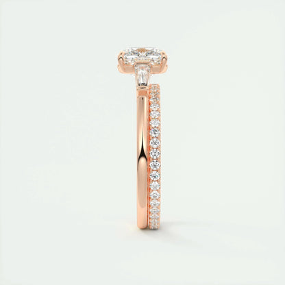 Three Stone and Band Stones: Additional 1.0 TCW of Baguette Moissanites, DEF Color, VVS Clarity, expertly set to maximize sparkle