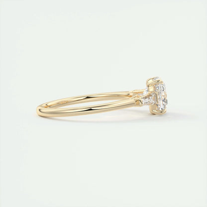 Crafted to perfection, this ring combines a modern three stone design with a classic cushion cut center stone. The band’s smooth finish and comfortable fit make it ideal for everyday wear. Whether it's an engagement or a special gift, this piece shines with timeless elegance.