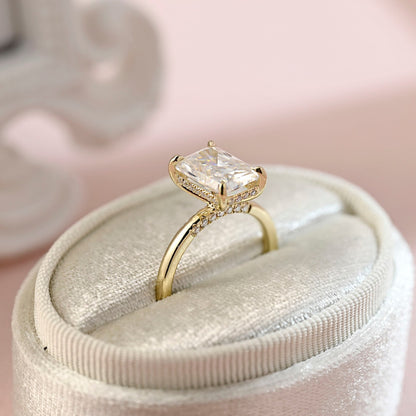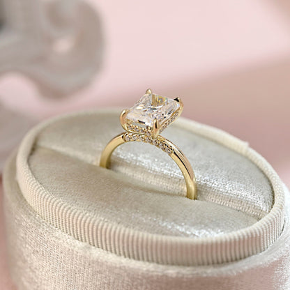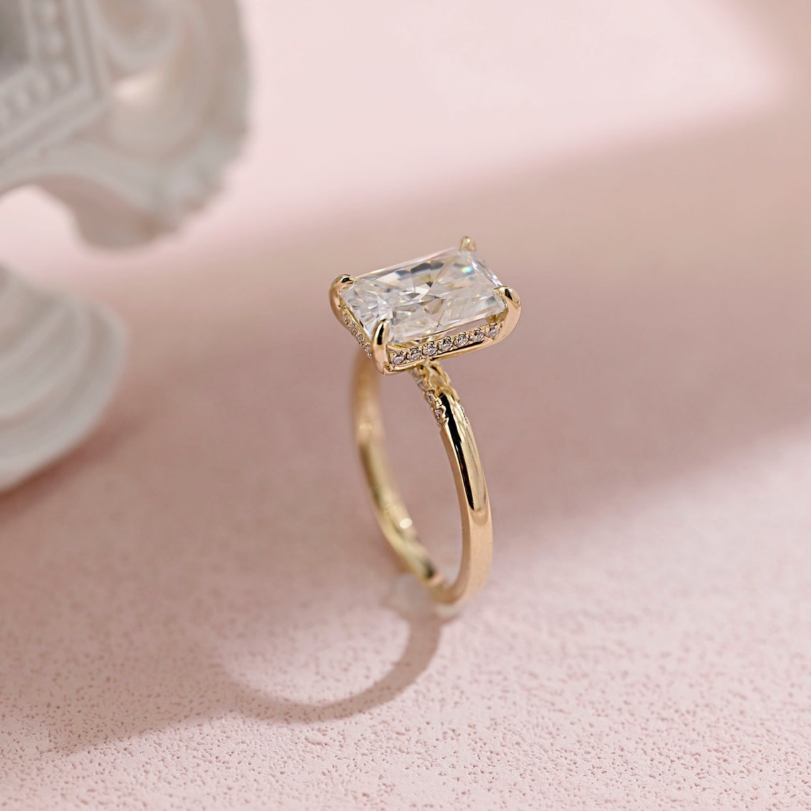 Crafted to perfection, this ring combines a modern hidden halo design with a classic radiant cut center stone. The band’s smooth finish and comfortable fit make it ideal for everyday wear. Whether it's an engagement or a special gift, this piece shines with timeless elegance.