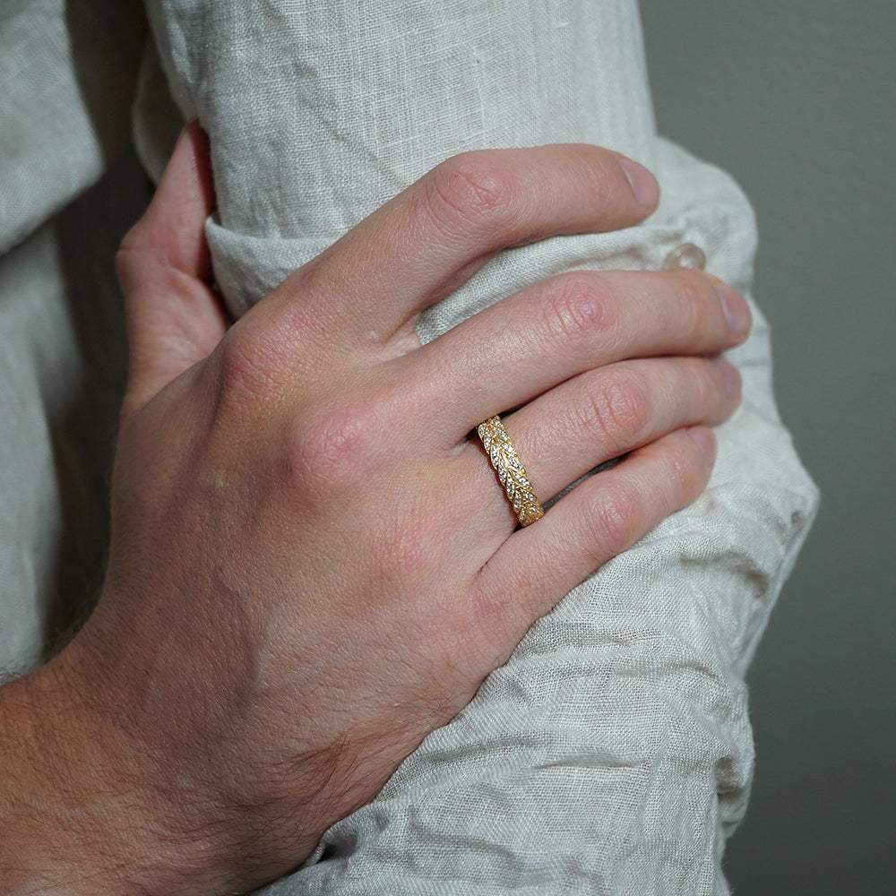 b) if the integrity of the design would be affected. An exchange would only apply to bands that are plain gold and don’t feature any stones. And like all of our pieces, the swapped ring would be handcrafted from scratch. Of course, we’ll always contact you if we’d recommend that route.