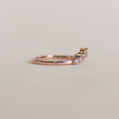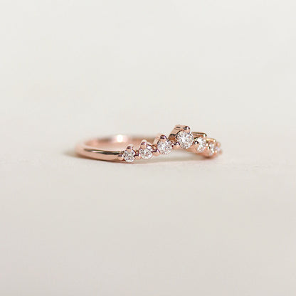 Crafted to perfection, this band combines a modern eternity design with a classic curve round cut center stone. The band’s smooth finish and comfortable fit make it ideal for everyday wear. Whether it's an engagement or a special gift, this piece shines with timeless elegance.