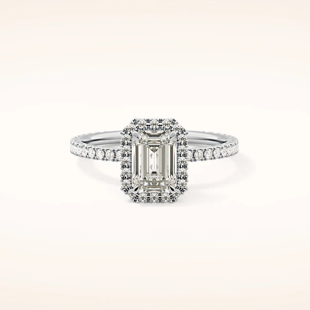 2.5 CT Emerald Pave & Hidden Halo Moissanite Engagement Ring
