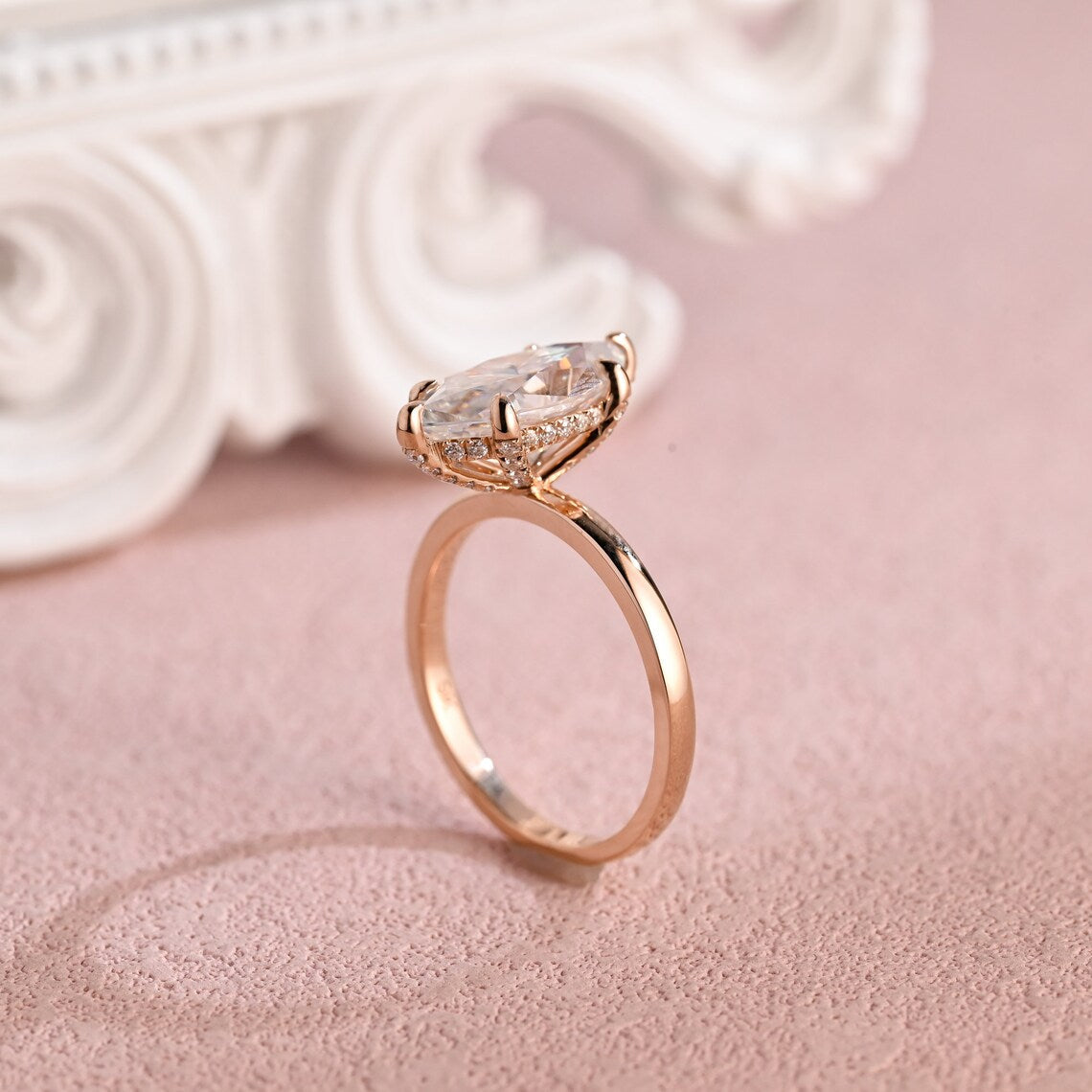 Hidden Halo Engagement Ring Featuring 3.0 CT Marquise Moissanite