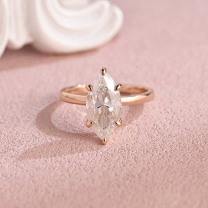 Center Stone: 3.0 CT Marquise Moissanite, DEF Color, VVS Clarity