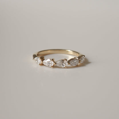 Crafted to perfection, this band combines a modern half eternity design with a classic pear cut stone. The band’s smooth finish and comfortable fit make it ideal for everyday wear. Whether it's an engagement or a special gift, this piece shines with timeless elegance.