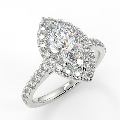 Halo Engagement Ring Featuring 0.9 CT Marquise Moissanite