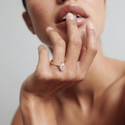 Crafted to perfection, this ring combines a modern solitaire design with a classic marquise cut center stone. The band’s smooth finish and comfortable fit make it ideal for everyday wear. Whether it's an engagement or a special gift, this piece shines with timeless elegance.