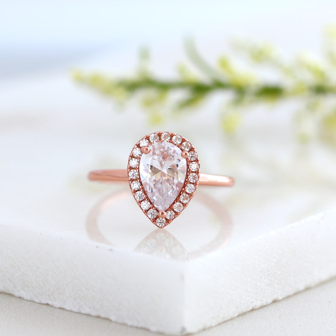 Crafted to perfection, this ring combines a modern halo design with a classic pear cut center stone. The band’s smooth finish and comfortable fit make it ideal for everyday wear. Whether it's an engagement or a special gift, this piece shines with timeless elegance.