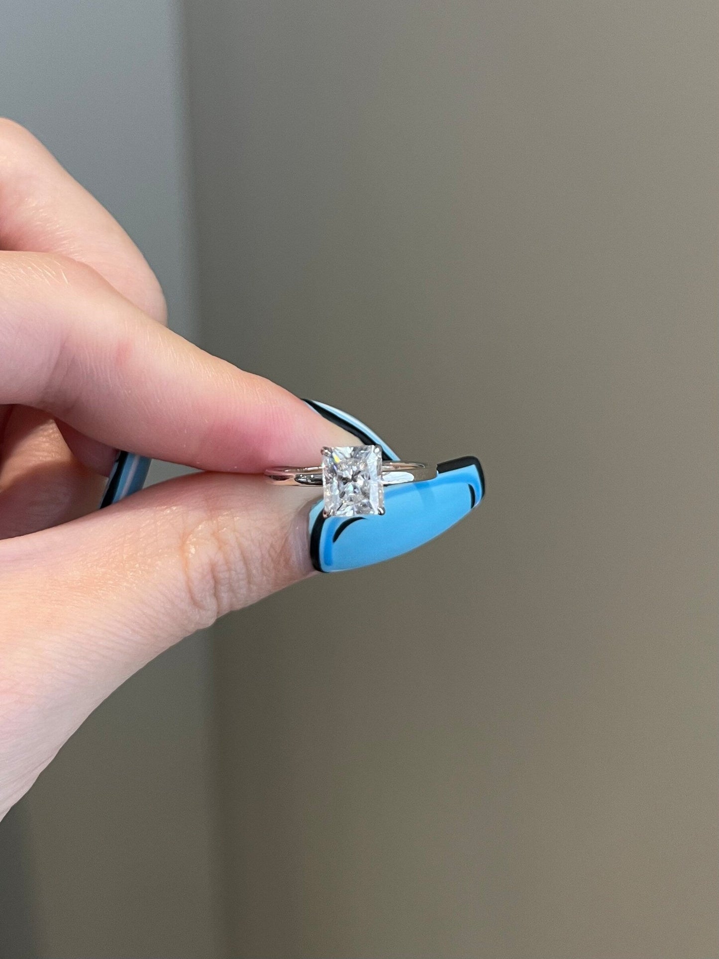 ✦ The Ring Shown in the Picture Holds a Beautiful 1.50 CT Radiant Cut Moissanite.