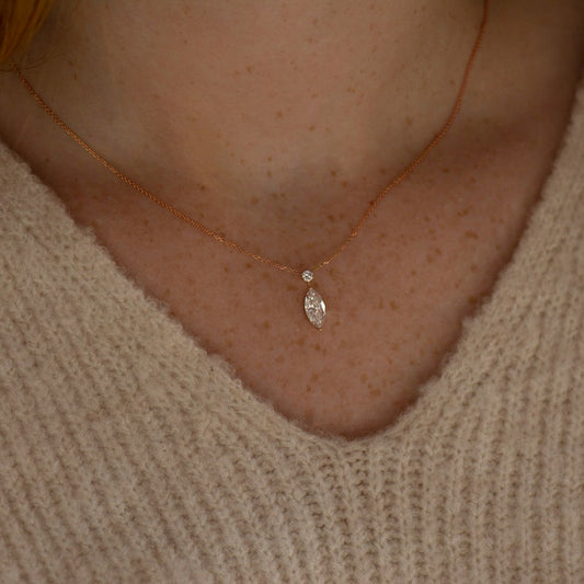 1.50 TCW Marquise & Round Shaped Moissanite Solitaire Necklace