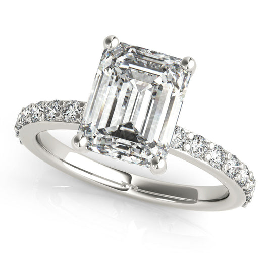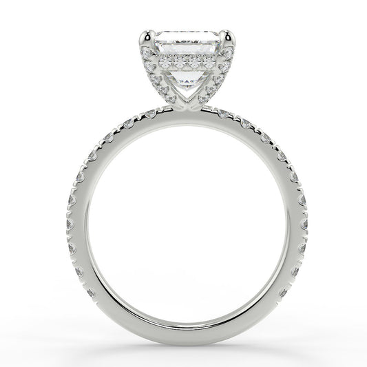 Hidden Halo & Pave Engagement Ring Featuring 2.0 CT Emerald Moissanite