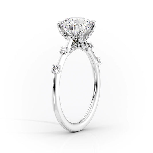1.5 CT Round Shaped Moissanite Engagement Ring In Cluster Design