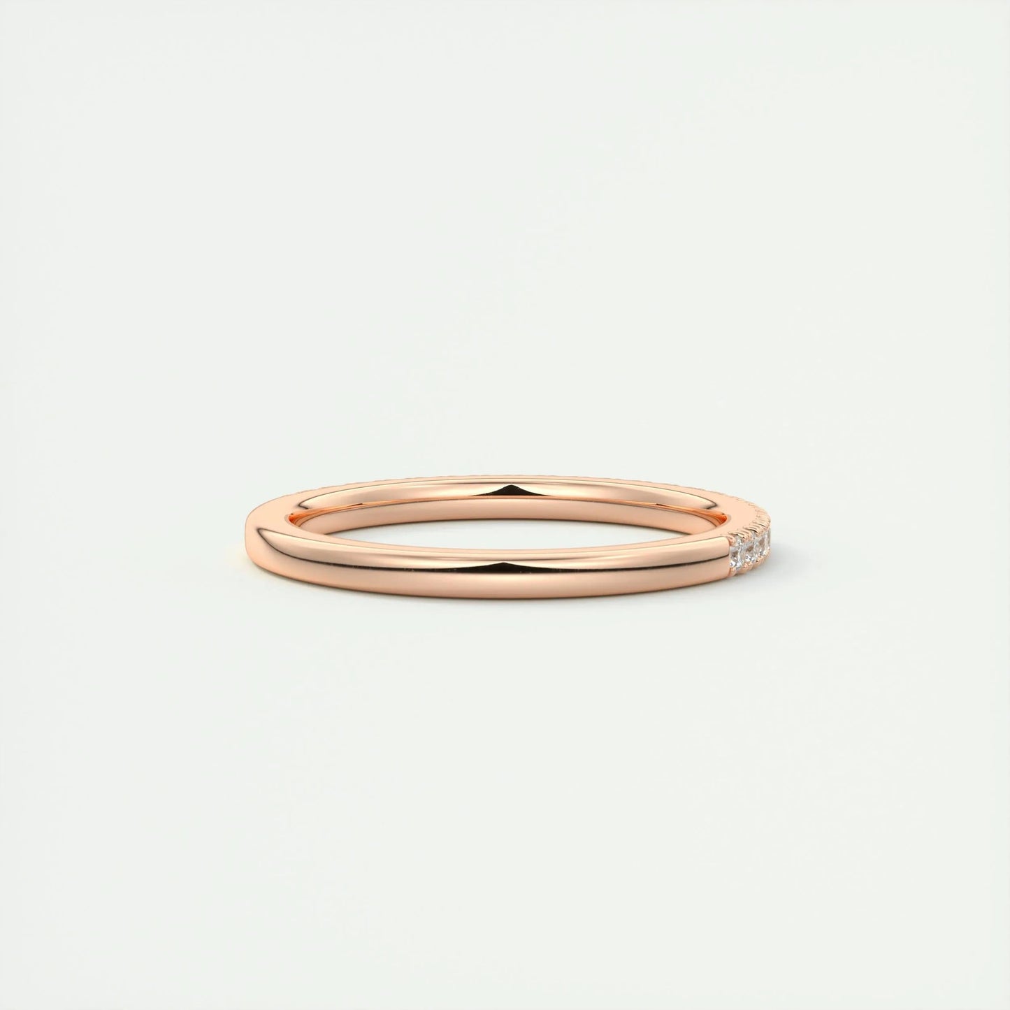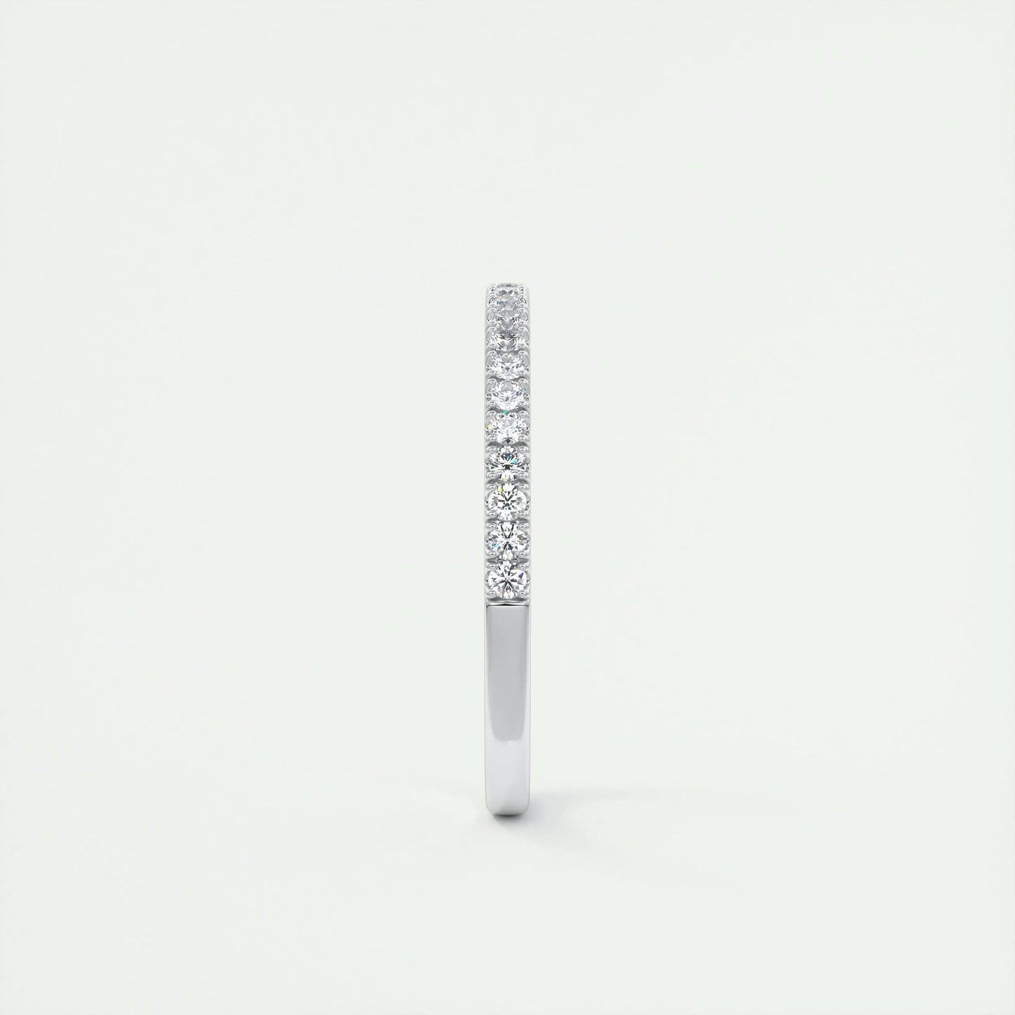 Crafted to perfection, this band combines a modern half eternity design with a classic round cut stone. The band’s smooth finish and comfortable fit make it ideal for everyday wear. Whether it's an engagement or a special gift, this piece shines with timeless elegance.