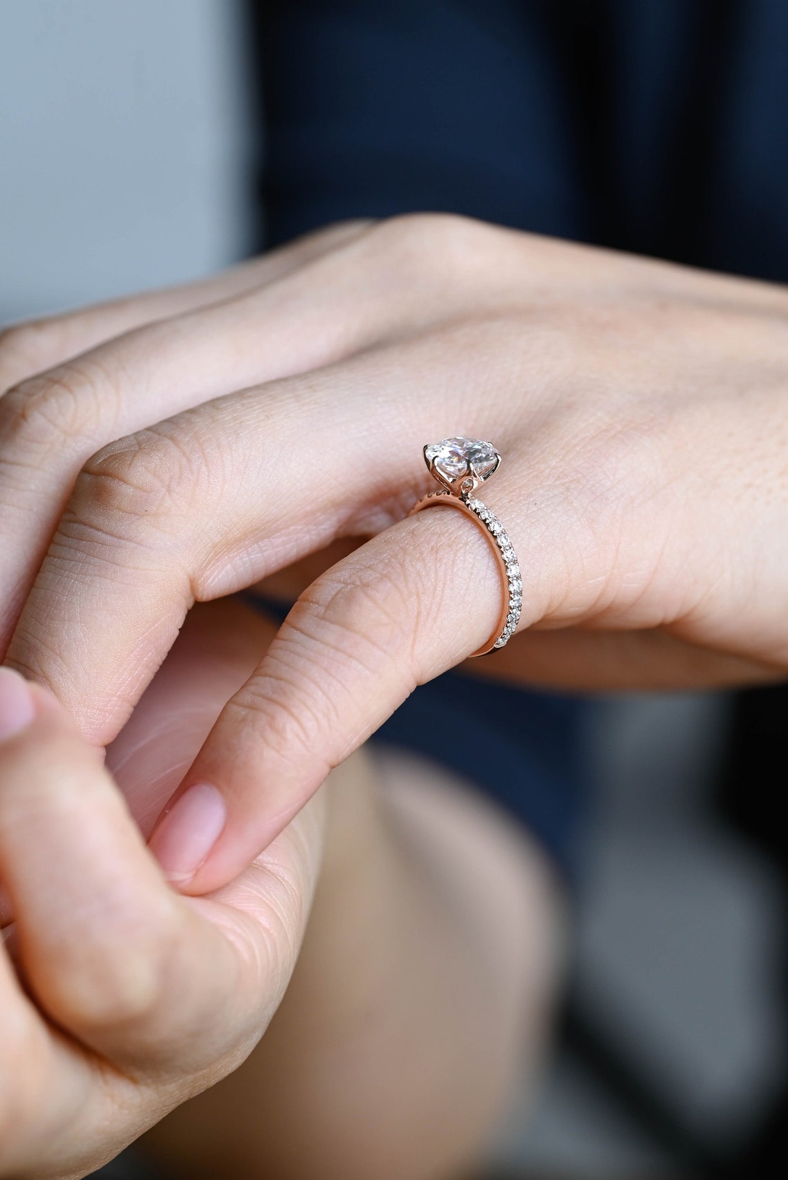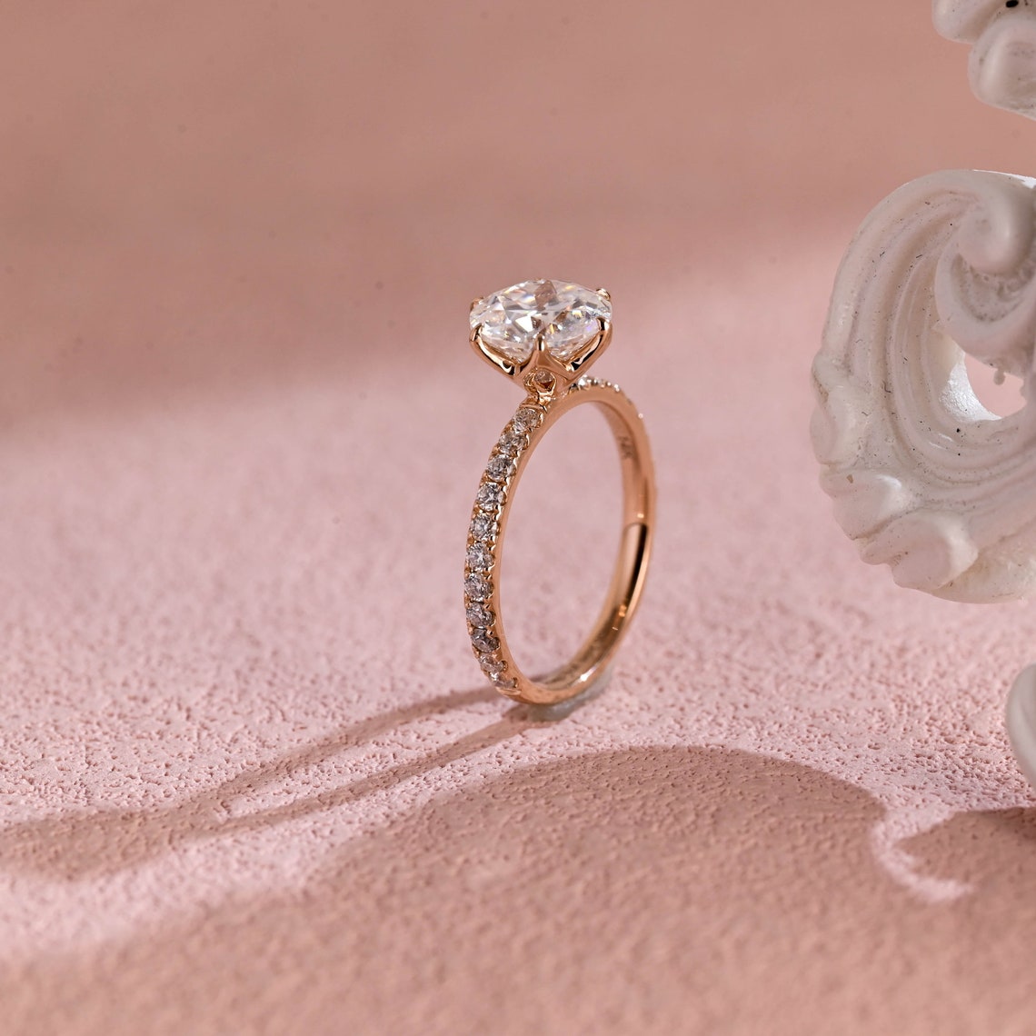 Pave Setting Engagement Ring Featuring 1.0 CT Round Moissanite
