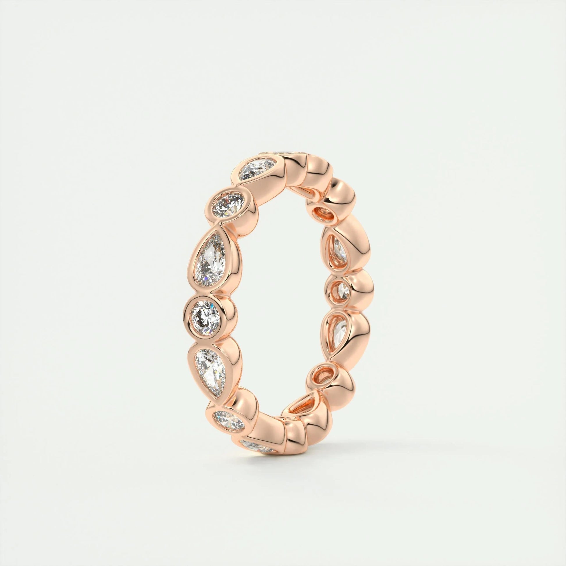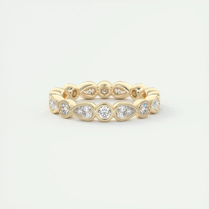 Crafted to perfection, this band combines a modern full eternity design with a classic pear & round cut stone. The band’s smooth finish and comfortable fit make it ideal for everyday wear. Whether it's an engagement or a special gift, this piece shines with timeless elegance.
