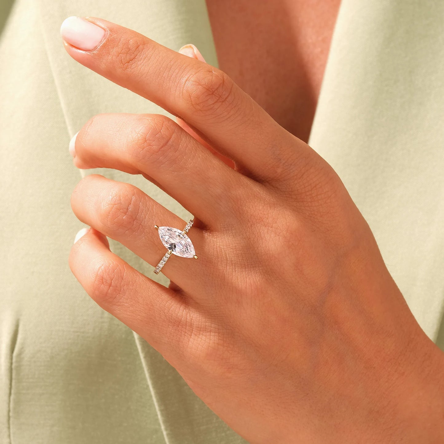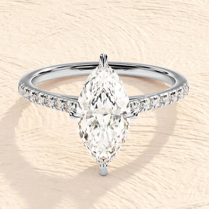 Pave Style Engagement Ring Featuring 2.0 CT Marquise Cut Moissanite