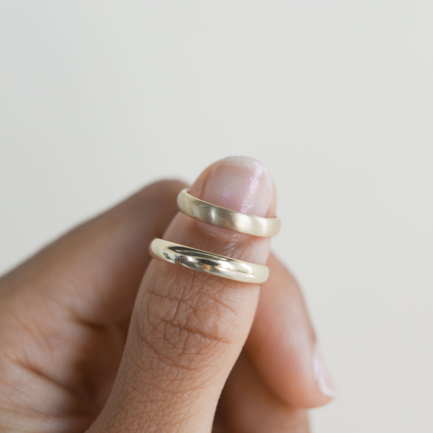 b) if the integrity of the design would be affected. An exchange would only apply to bands that are plain gold and don’t feature any stones. And like all of our pieces, the swapped ring would be handcrafted from scratch. Of course, we’ll always contact you if we’d recommend that route.
