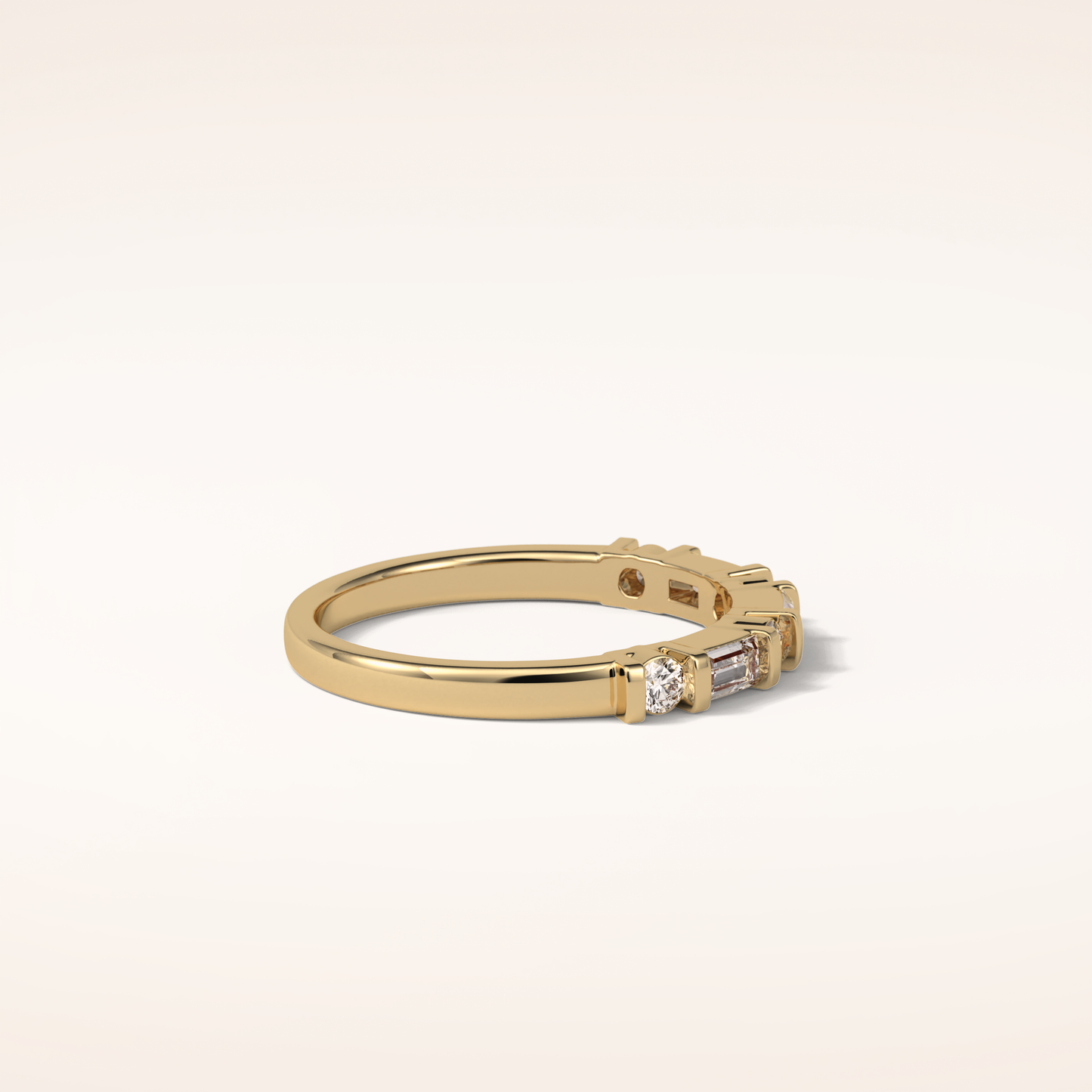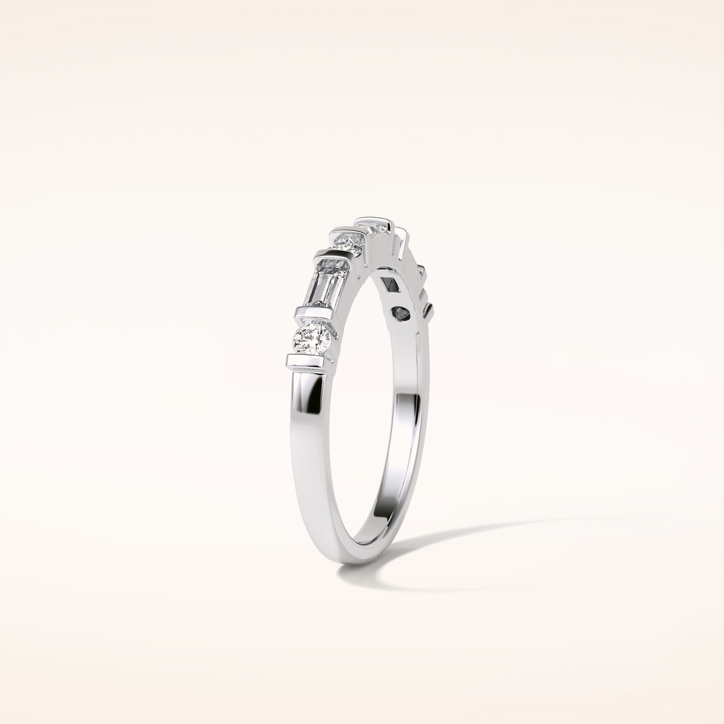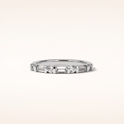 0.42 Baguette & Round Shaped Moissanite Seven Stone Wedding Band