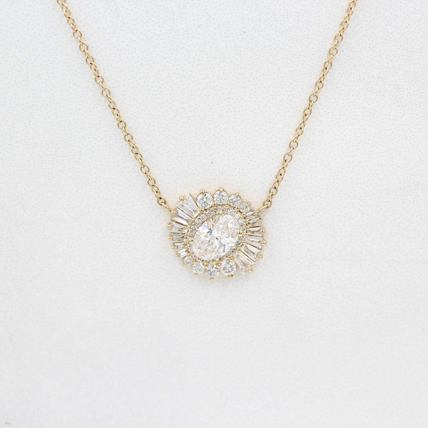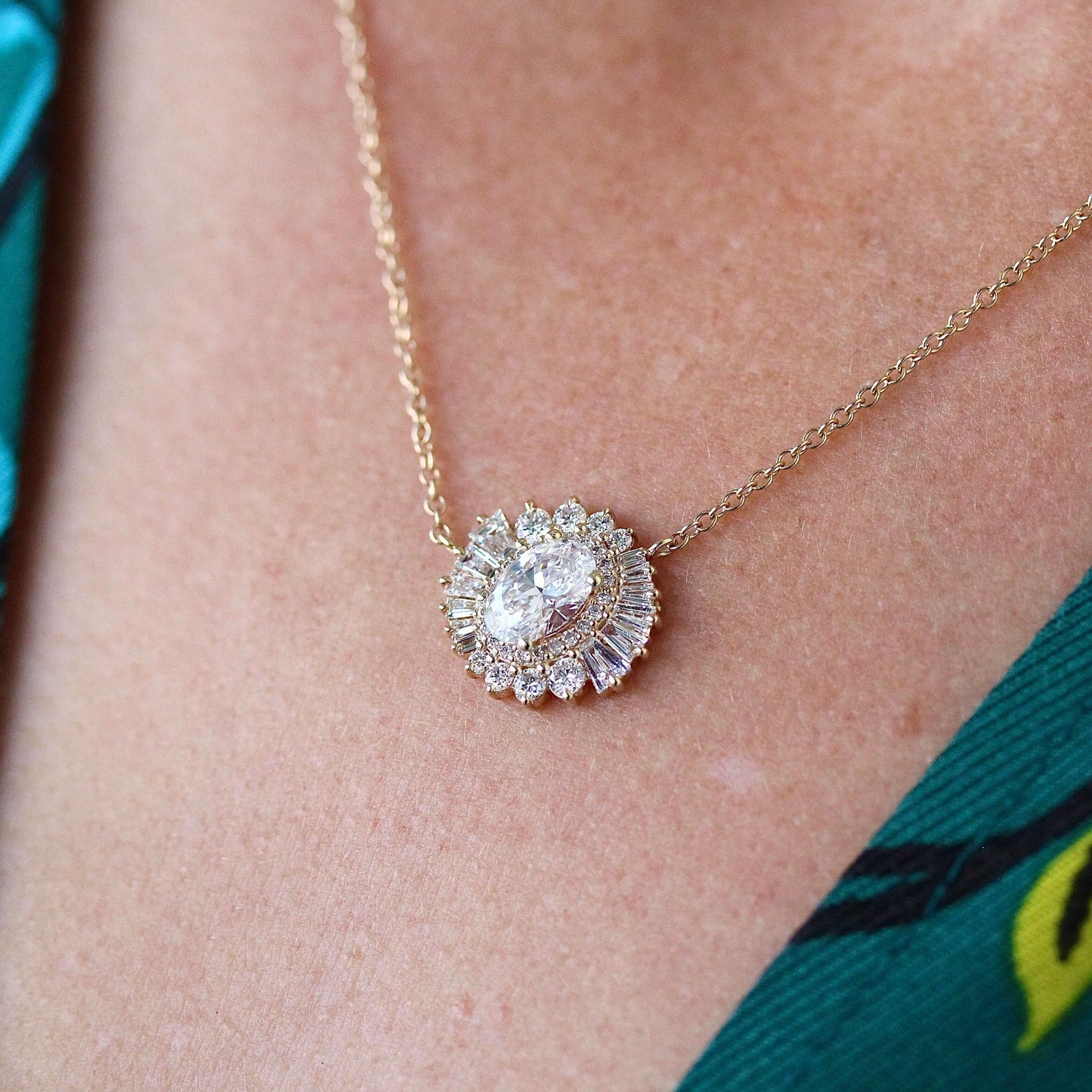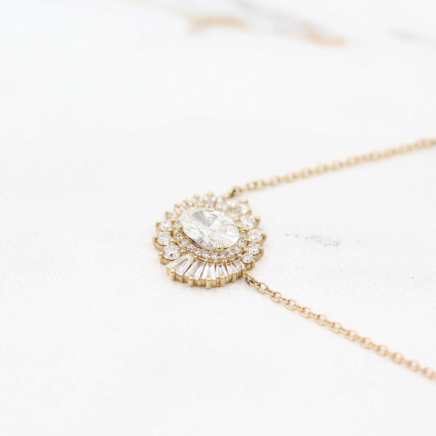1.04 CT Oval Shape Moissanite Necklace With Halo