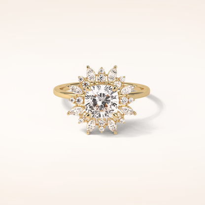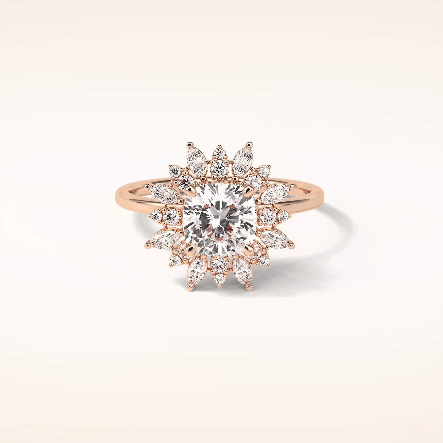 1.21 CT Cushion Shaped Cluster Moissanite Engagement Ring
